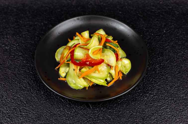 Салат из кабачков по-корейски можно использовать как отдельное блюдо или в сочетании с кашами и макаронами. Кушанье способно также дополнить рыбу или мясо, отлично сочетается с копченостями.