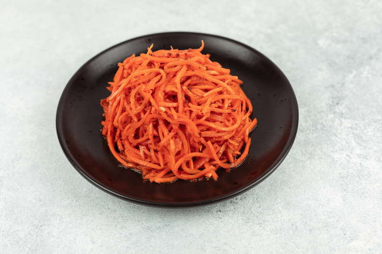 Описание: Морковь по-корейски острая – простой и одновременно вкусный салат, популярный среди любителей азиатской кухни. Он приготовлен из свежей моркови, нашинкованной длинной тонкой соломкой, с добавлением растительного масла, уксуса и острых приправ.Продукт содержит большое количество витаминов, минералов, клетчатки, органических кислот и других полезных веществ, оказывает благотворное влияние на организм человека. Благодаря каротину, морковь укрепляет глазную сетчатку и способствует восстановлению зрения, витамины группы В и РР оказывают сосудорасширяющее воздействие, препятствуют развитию атеросклероза, грубые волокна улучшают пищеварение, а антиоксиданты связывают свободные радикалы и выводят токсины. Продукт обладает также антивирусным и антибактериальным действием, укрепляет иммунитет, улучшает состояние волос и кожи.